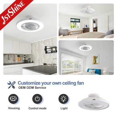 স্টাডি রুমের জন্য ডিমযোগ্য সাদা আধুনিক সহ আবদ্ধ ব্লেডবিহীন এলইডি সিলিং ফ্যান