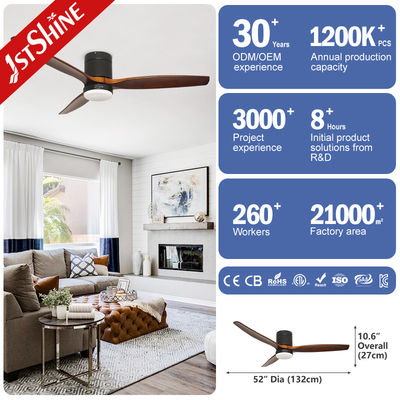 3 প্রাকৃতিক কাঠের ব্লেড এলইডি লাইটিং ফ্ল্যাশ মাউন্টেড সিলিং ফ্যান উইথ রিমোট
