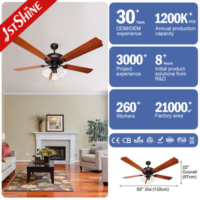 52 ইঞ্চি 60W শব্দহীন সিলিং ফ্যান 220v রেস্টুরেন্ট লিভিং রুম জন্য 5 ব্লেড