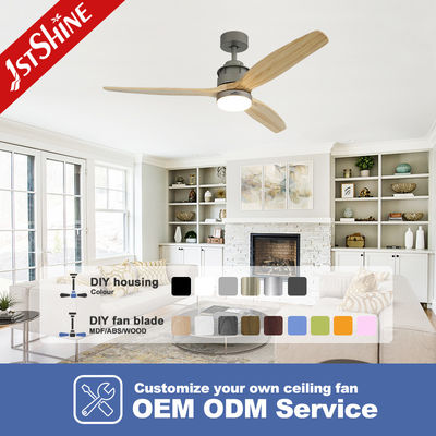 52 ইঞ্চি Bldc রিমোট LED সিলিং ফ্যান 3 প্রাকৃতিক কঠিন কাঠের ফলক