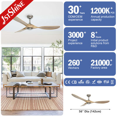 56 ইঞ্চি ডিসি মোটর 3 সলিড কাঠের ব্লেডস রিমোট কন্ট্রোল সহ সিলিং ভেন্টিলেশন ফ্যান