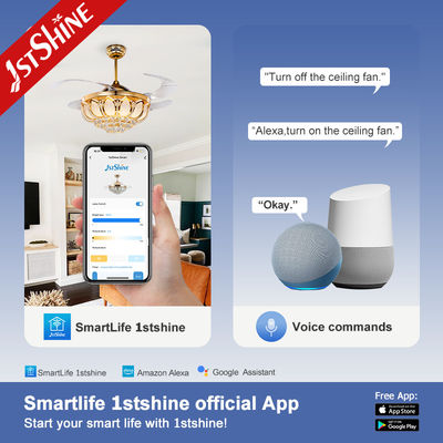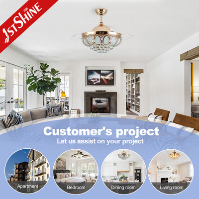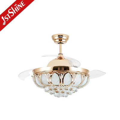 42 ইঞ্চি ক্রিস্টাল রিট্র্যাক্টেবল সিলিং ফ্যান হালকা ধাতু তামা এবিএস ব্লেড