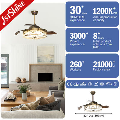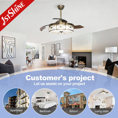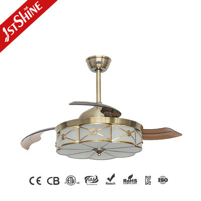 230v Led Retractable Ceiling Fan ডিসি মোটর রেট্রো খাঁটি তামা সজ্জা