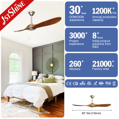 কম গোলমাল ডিসি মোটর সিলিং ফ্যান 2 সলিড কাঠের ব্লেড উচ্চ গতির বায়ু প্রবাহ