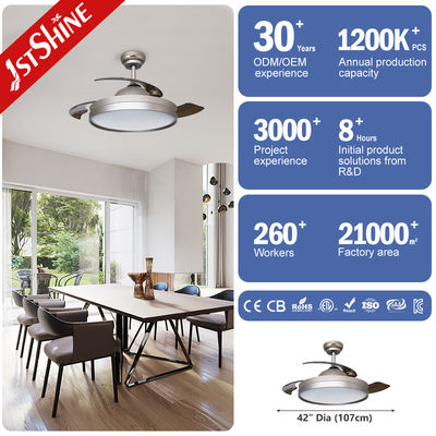 রিমোট কন্ট্রোল ডিসি মোটর ৩ পিসি প্লাস্টিকের ব্লেড এলইডি সহ ৪২ ইঞ্চি retractable সিলিং ফ্যান