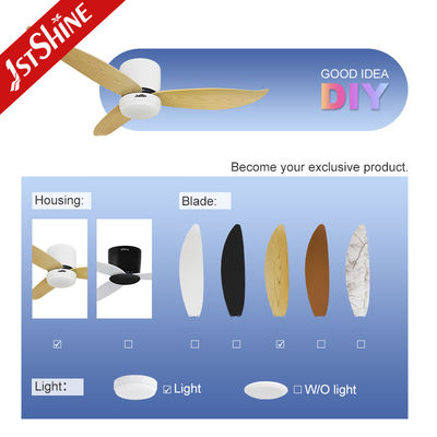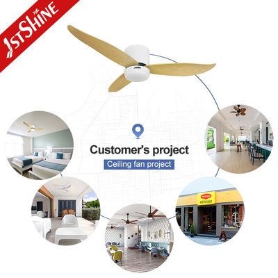 52 ইঞ্চি কাঠের শস্য রঙ এবিএস ব্লেড ফ্লাশ মাউন্ট নেতৃত্বাধীন সিলিং ফ্যান