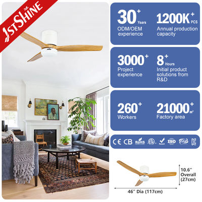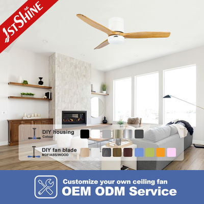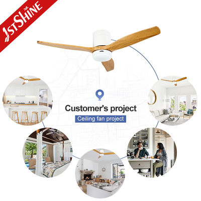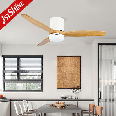 3 প্রাকৃতিক কাঠের ব্লেড ফ্ল্যাশ মাউন্ট স্মার্ট অ্যাপ কন্ট্রোল সিলিং ফ্যান উইথ এলইডি লাইট