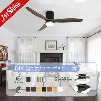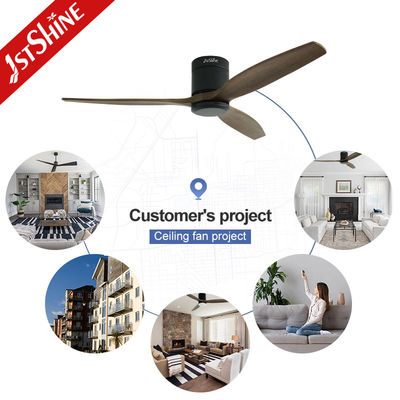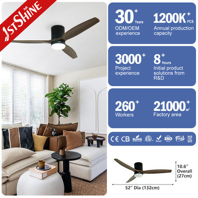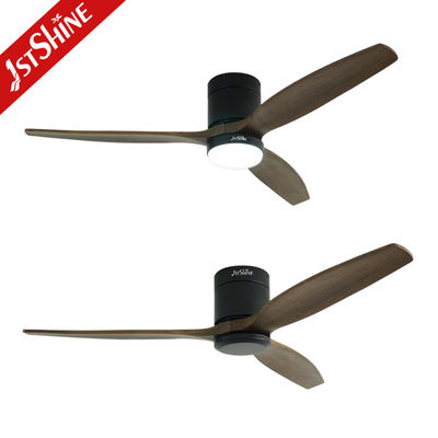 3টি প্রাকৃতিক কাঠের ব্লেড লো-প্রোফাইল ফ্ল্যাশ মাউন্ট 52 ইঞ্চি সিলিং ফ্যান এলইডি লাইটের সাথে