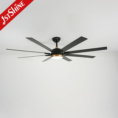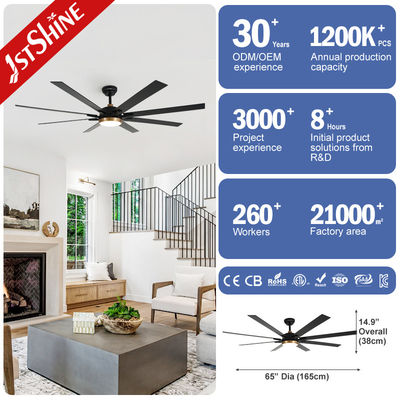 65 " বড় সিলিং ফ্যান ম্যাট কালো 8 এমডিএফ ব্লেড ডিসি মোটর LED সিলিং ফ্যান রিমোট কন্ট্রোল সহ