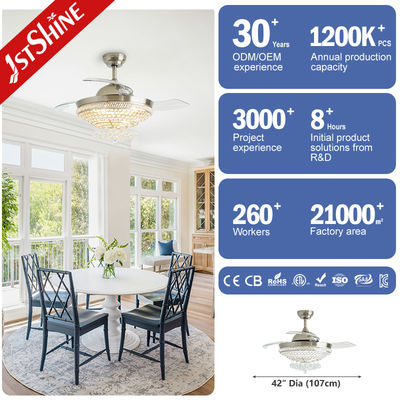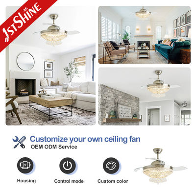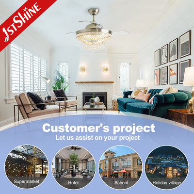 2. ক্রিস্টাল আলোকসজ্জা: যখন আলো চালু করা হয়, তখন retractable ceiling fan এর উজ্জ্বলতা সত্যিই উজ্জ্বল হয়।ল্যাম্পশ্যাডের নিচে থাকা স্ফটিকের মধ্য দিয়ে যাওয়া আলো একটি মহিমান্বিত এবং আকর্ষণীয় আলোকসজ্জার মধ্যে বিচ্ছিন্ন হয়, যা একটি মনোমুগ্ধকর আলোক ছড়িয়ে দেয় যা রুমকে মোহিত করে।