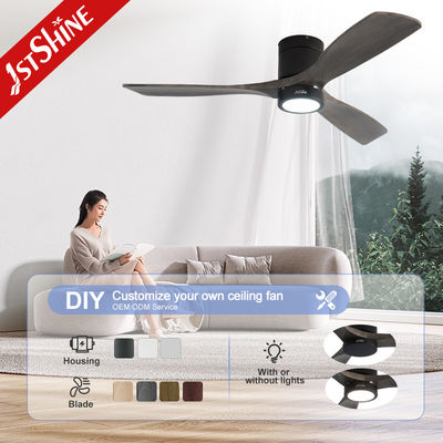আলোর সাথে আলংকারিক 3 প্রাকৃতিক কাঠের ব্লেড ফ্লাশ মাউন্ট নেতৃত্বাধীন তুয়া স্মার্ট সিলিং ফ্যান