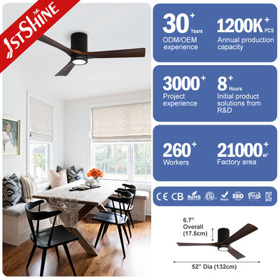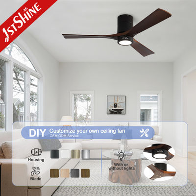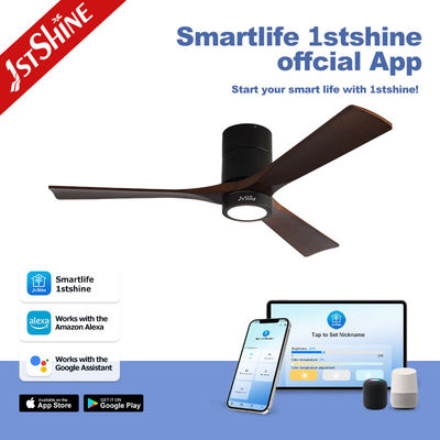 আলোর সাথে আলংকারিক 3 প্রাকৃতিক কাঠের ব্লেড ফ্লাশ মাউন্ট নেতৃত্বাধীন তুয়া স্মার্ট সিলিং ফ্যান