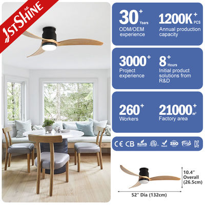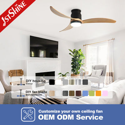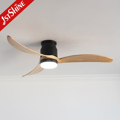 আলোর সাথে আলংকারিক 3 প্রাকৃতিক কাঠের ব্লেড ফ্লাশ মাউন্ট নেতৃত্বাধীন তুয়া স্মার্ট সিলিং ফ্যান