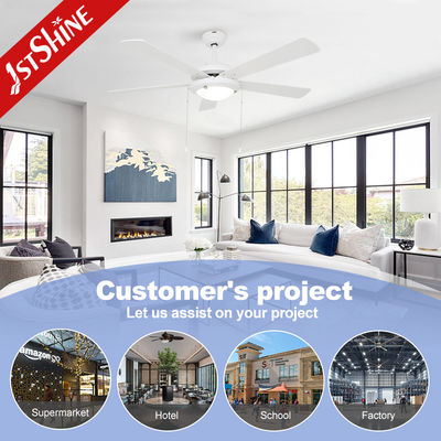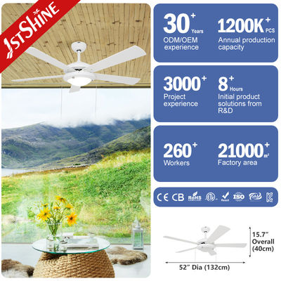 LED লাইট এবং টান চেইন সহ 52 "হোয়াইট সিলিং ফ্যান 1stShine